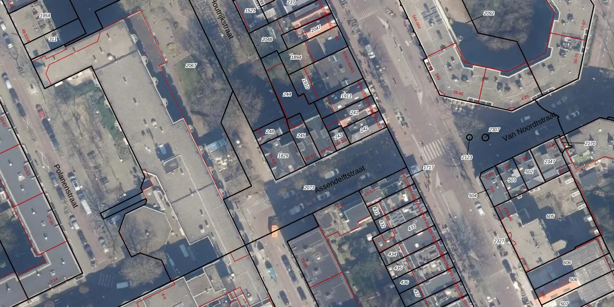 Assendelftstraat 6-B is gelegen op kadastraal perceel ASD20X245. Deze kadastrale aanduiding is uniek en wordt gebruikt door het Kadaster om eigendomsrechten en andere zakelijke rechten vast te leggen. Het perceel maakt onderdeel uit van de kadastrale gemeente Amsterdam.