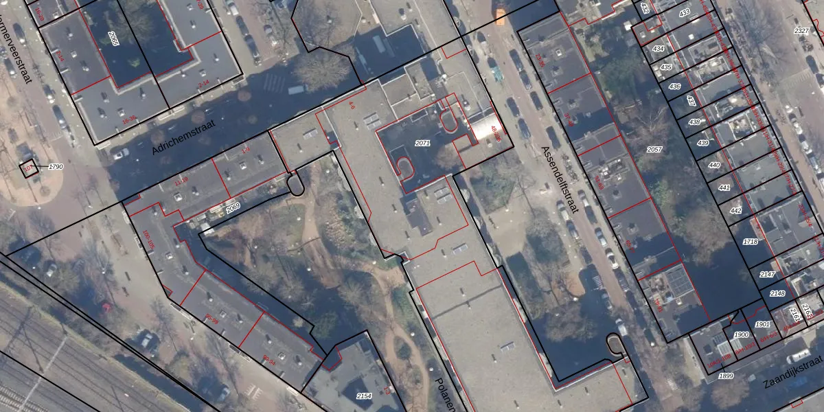 Assendelftstraat 90 is gelegen op kadastraal perceel ASD20X2071. Deze kadastrale aanduiding is uniek en wordt gebruikt door het Kadaster om eigendomsrechten en andere zakelijke rechten vast te leggen. Het perceel maakt onderdeel uit van de kadastrale gemeente Amsterdam.
