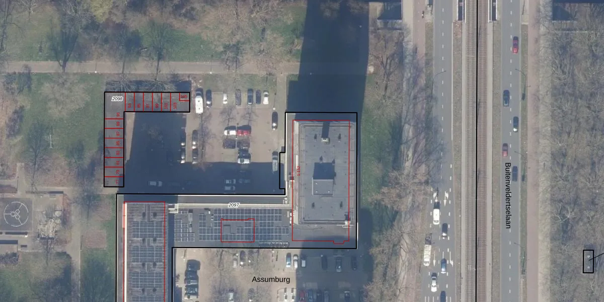 Het perceel waarop Assumburg 110 staat heeft een oppervlakte van 2815 m². Dit is een zeer groot perceel. De perceeloppervlakte wordt geregistreerd door het Kadaster. Gedetailleerde informatie over de maten van dit perceel kunt u vinden in het rapport Kadastrale kaart met maatvoering van Assumburg 110.