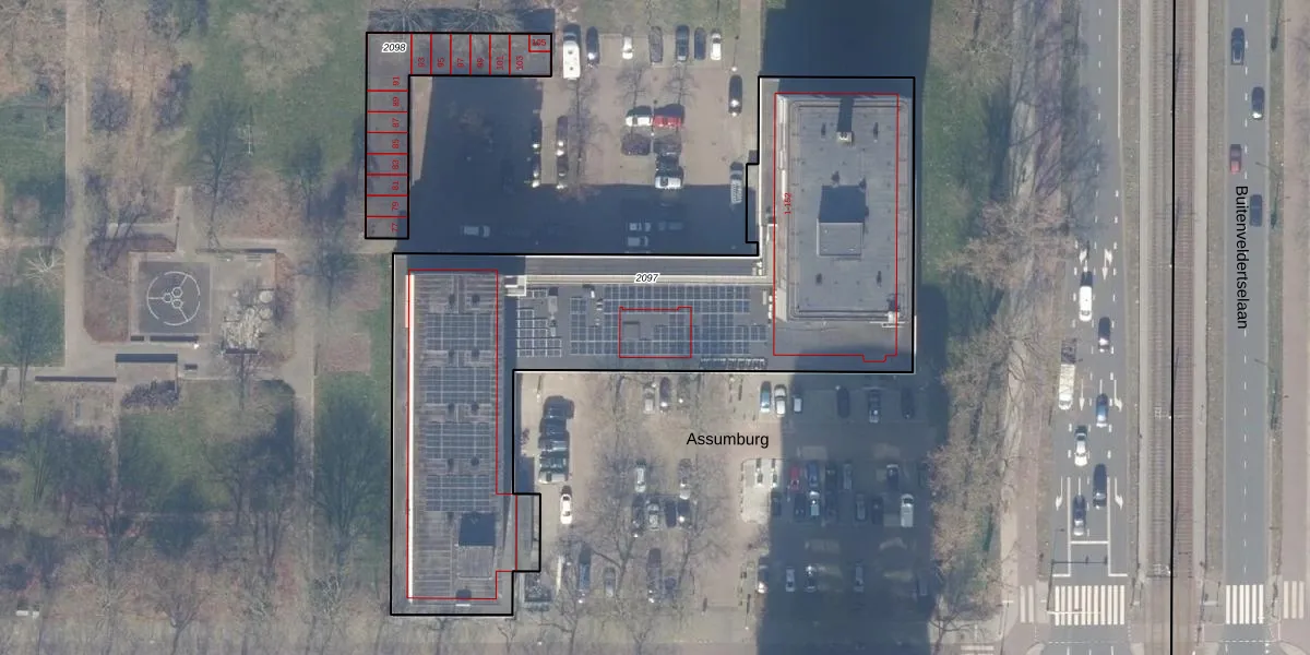 Het perceel waarop Assumburg 2-A staat heeft een oppervlakte van 2815 m². Dit is een zeer groot perceel. De perceeloppervlakte wordt geregistreerd door het Kadaster. Gedetailleerde informatie over de maten van dit perceel kunt u vinden in het rapport Kadastrale kaart met maatvoering van Assumburg 2-A.