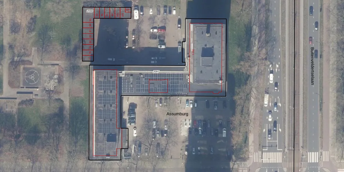 Het perceel waarop Assumburg 2-C staat heeft een oppervlakte van 2815 m². Dit is een zeer groot perceel. De perceeloppervlakte wordt geregistreerd door het Kadaster. Gedetailleerde informatie over de maten van dit perceel kunt u vinden in het rapport Kadastrale kaart met maatvoering van Assumburg 2-C.