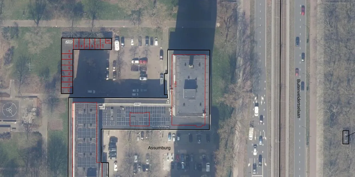Het perceel waarop Assumburg 40 staat heeft een oppervlakte van 2815 m². Dit is een zeer groot perceel. De perceeloppervlakte wordt geregistreerd door het Kadaster. Gedetailleerde informatie over de maten van dit perceel kunt u vinden in het rapport Kadastrale kaart met maatvoering van Assumburg 40.