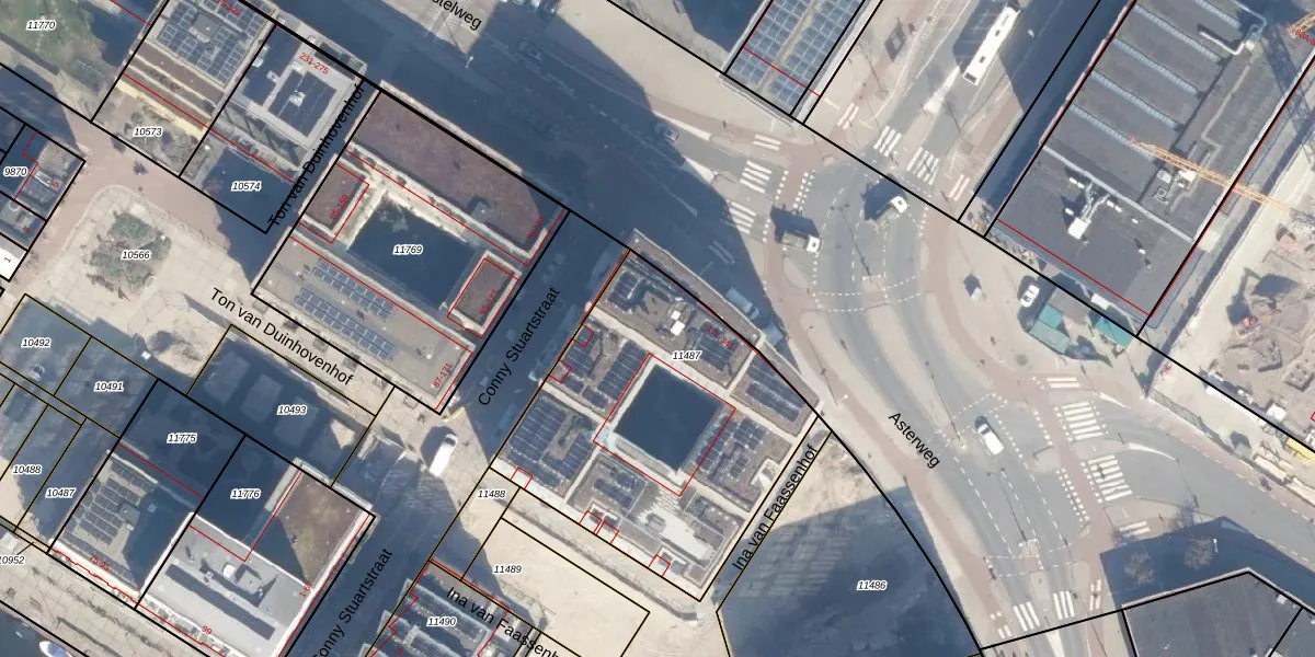 Asterweg 223 is gelegen op kadastraal perceel ASD07K11487. Deze kadastrale aanduiding is uniek en wordt gebruikt door het Kadaster om eigendomsrechten en andere zakelijke rechten vast te leggen. Het perceel maakt onderdeel uit van de kadastrale gemeente Amsterdam.