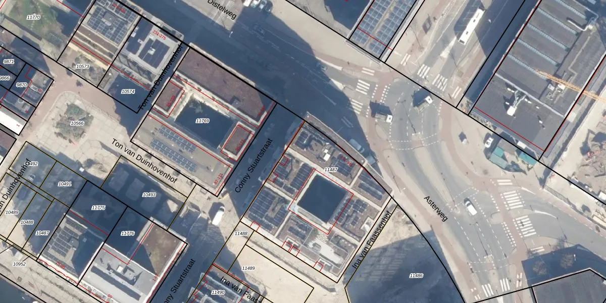Asterweg 255 is gelegen op kadastraal perceel ASD07K11487. Deze kadastrale aanduiding is uniek en wordt gebruikt door het Kadaster om eigendomsrechten en andere zakelijke rechten vast te leggen. Het perceel maakt onderdeel uit van de kadastrale gemeente Amsterdam.