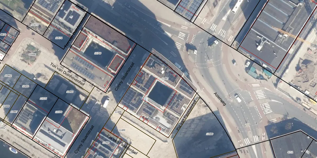 Asterweg 297 is gelegen op kadastraal perceel ASD07K11487. Deze kadastrale aanduiding is uniek en wordt gebruikt door het Kadaster om eigendomsrechten en andere zakelijke rechten vast te leggen. Het perceel maakt onderdeel uit van de kadastrale gemeente Amsterdam.