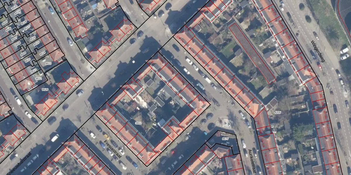 Het perceel waarop Aurikelstraat 107 staat heeft een oppervlakte van 2165 m². Dit is een zeer groot perceel. De perceeloppervlakte wordt geregistreerd door het Kadaster. Gedetailleerde informatie over de maten van dit perceel kunt u vinden in het rapport Kadastrale kaart met maatvoering van Aurikelstraat 107.