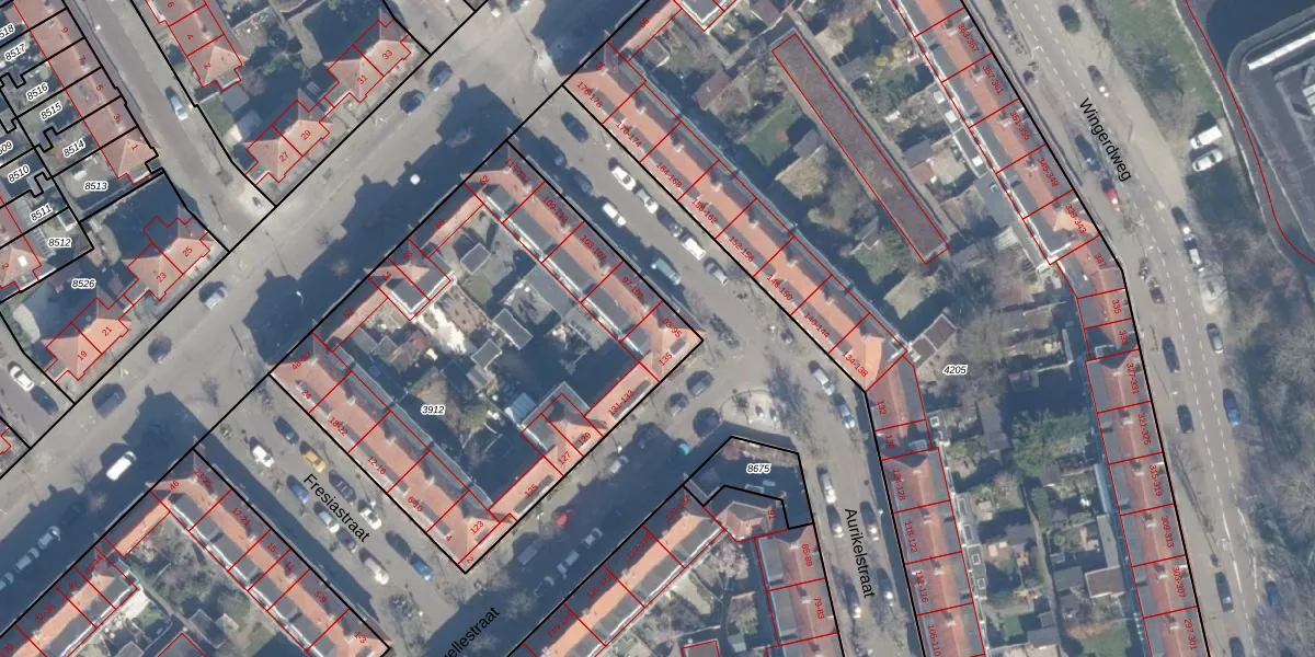 Het perceel waarop Aurikelstraat 95 staat heeft een oppervlakte van 2165 m². Dit is een zeer groot perceel. De perceeloppervlakte wordt geregistreerd door het Kadaster. Gedetailleerde informatie over de maten van dit perceel kunt u vinden in het rapport Kadastrale kaart met maatvoering van Aurikelstraat 95.