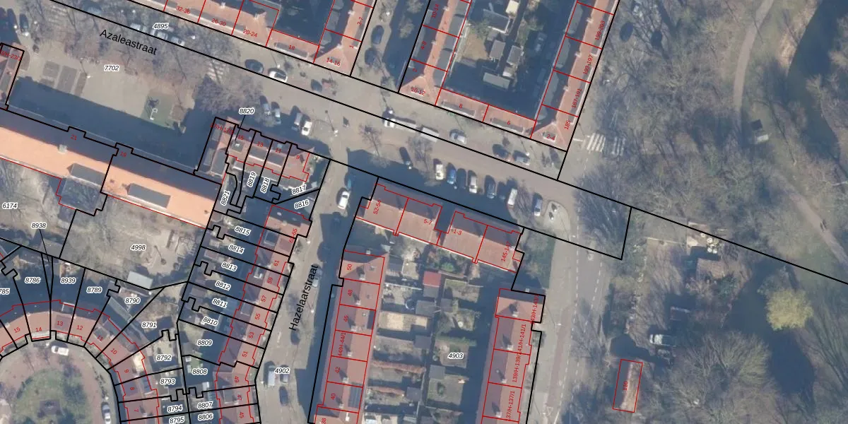 Het perceel waarop Azaleastraat 7 staat heeft een oppervlakte van 3490 m². Dit is een zeer groot perceel. De perceeloppervlakte wordt geregistreerd door het Kadaster. Gedetailleerde informatie over de maten van dit perceel kunt u vinden in het rapport Kadastrale kaart met maatvoering van Azaleastraat 7.