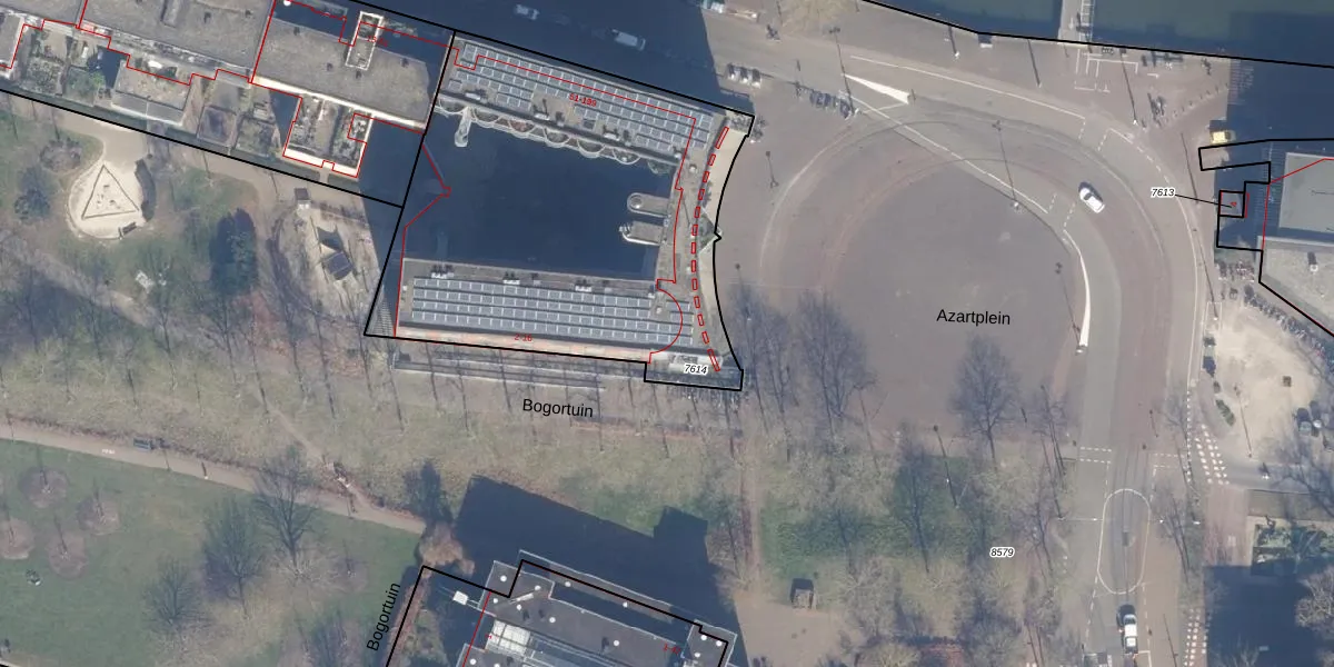 Het perceel waarop Azartplein 165 staat heeft een oppervlakte van 2125 m². Dit is een zeer groot perceel. De perceeloppervlakte wordt geregistreerd door het Kadaster. Gedetailleerde informatie over de maten van dit perceel kunt u vinden in het rapport Kadastrale kaart met maatvoering van Azartplein 165.