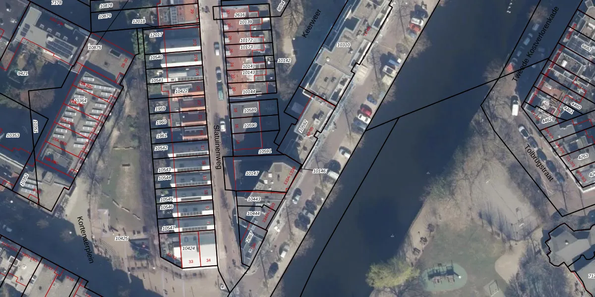 Het adres ligt op het perceel STN02-C-10592, dat zich in de kadastrale gemeente Sloten Noord-Holland bevindt. Het perceel is 266 m² groot. Dat is kleiner dan de gemiddelde perceeloppervlakte in Sloten Noord-Holland, dat op 2098,84 m² ligt. Het grootste perceel in de kadastrale gemeente is 1,05 km². Het kleinste perceel heeft een oppervlakte van 0 m². Op het perceel liggen in totaal 7 adressen. De laatste wijziging in het de Basisregistratie Kadaster (BRK) was op 18-12-2006.