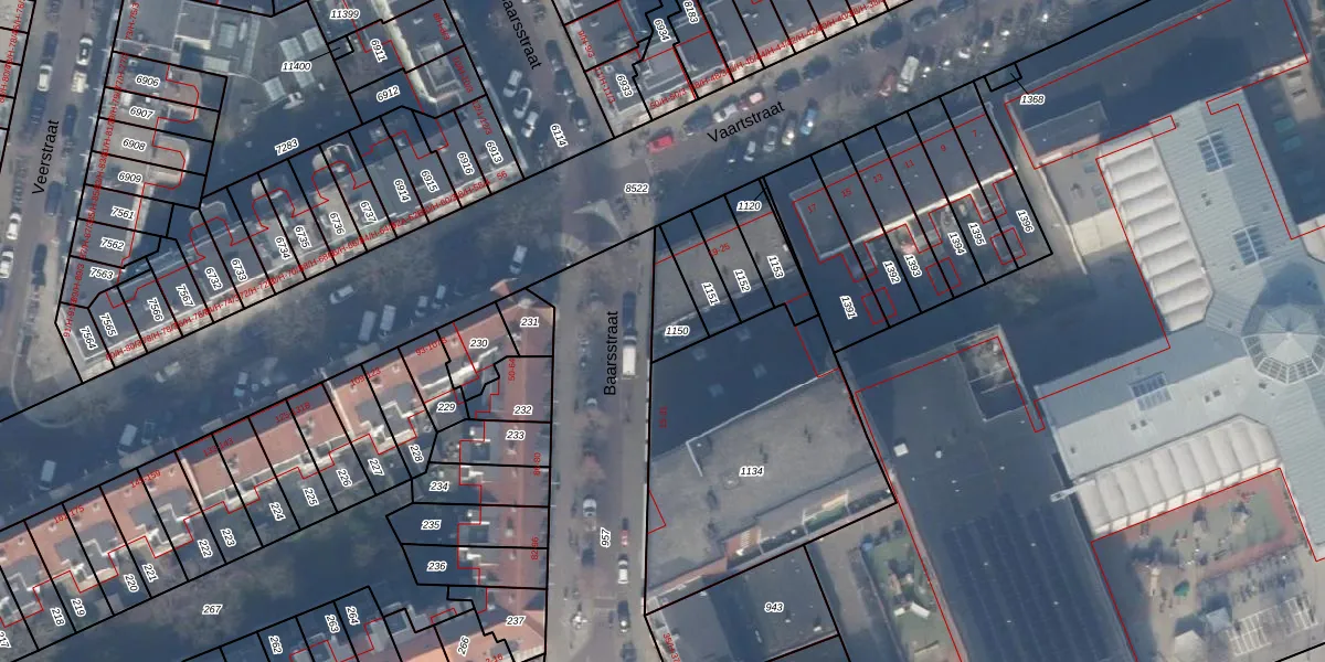 Het perceel waarop Baarsstraat 15 staat heeft een oppervlakte van 96 m². Dit is een klein perceel. De perceeloppervlakte wordt geregistreerd door het Kadaster. Gedetailleerde informatie over de maten van dit perceel kunt u vinden in het rapport Kadastrale kaart met maatvoering van Baarsstraat 15.