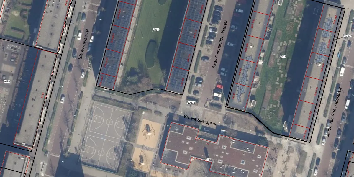 Het perceel waarop Baas Gansendonckstraat 1-3 staat heeft een oppervlakte van 3612 m². Dit is een zeer groot perceel. De perceeloppervlakte wordt geregistreerd door het Kadaster. Gedetailleerde informatie over de maten van dit perceel kunt u vinden in het rapport Kadastrale kaart met maatvoering van Baas Gansendonckstraat 1-3.