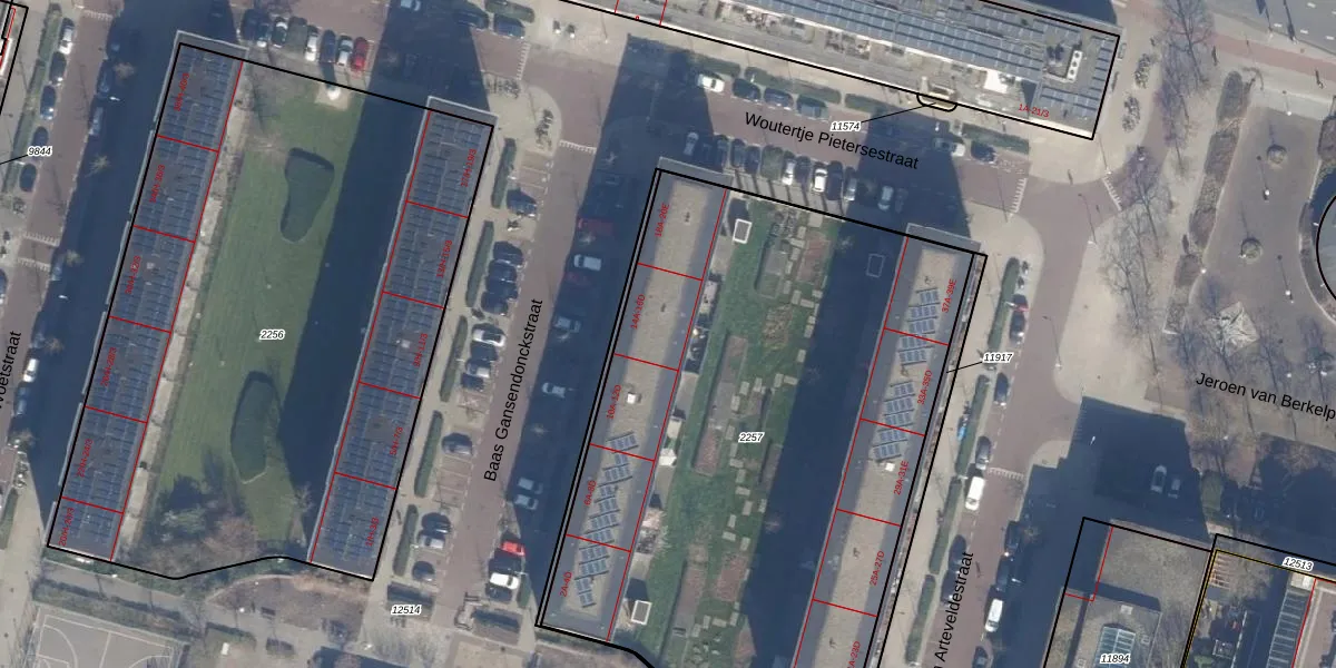 Het perceel waarop Baas Gansendonckstraat 14-D staat heeft een oppervlakte van 3616 m². Dit is een zeer groot perceel. De perceeloppervlakte wordt geregistreerd door het Kadaster. Gedetailleerde informatie over de maten van dit perceel kunt u vinden in het rapport Kadastrale kaart met maatvoering van Baas Gansendonckstraat 14-D.