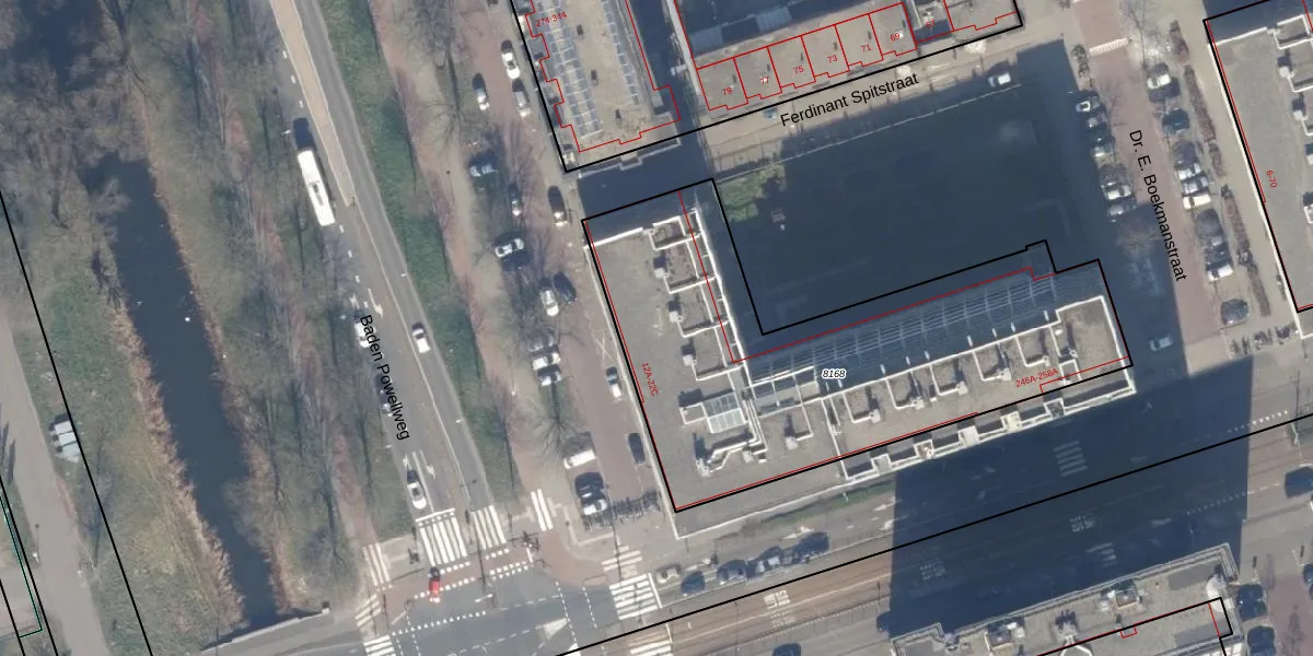 Het perceel waarop Baden Powellweg 14-E staat heeft een oppervlakte van 2077 m². Dit is een zeer groot perceel. De perceeloppervlakte wordt geregistreerd door het Kadaster. Gedetailleerde informatie over de maten van dit perceel kunt u vinden in het rapport Kadastrale kaart met maatvoering van Baden Powellweg 14-E.