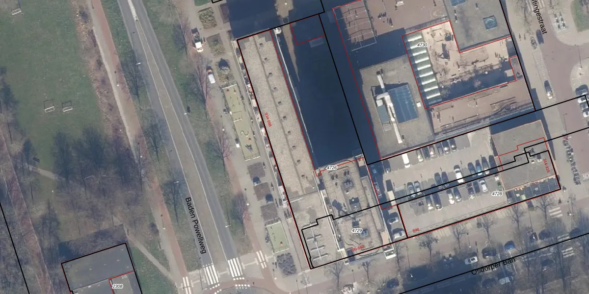 Het perceel waarop Baden Powellweg 950 staat heeft een oppervlakte van 3000 m². Dit is een zeer groot perceel. De perceeloppervlakte wordt geregistreerd door het Kadaster. Gedetailleerde informatie over de maten van dit perceel kunt u vinden in het rapport Kadastrale kaart met maatvoering van Baden Powellweg 950.