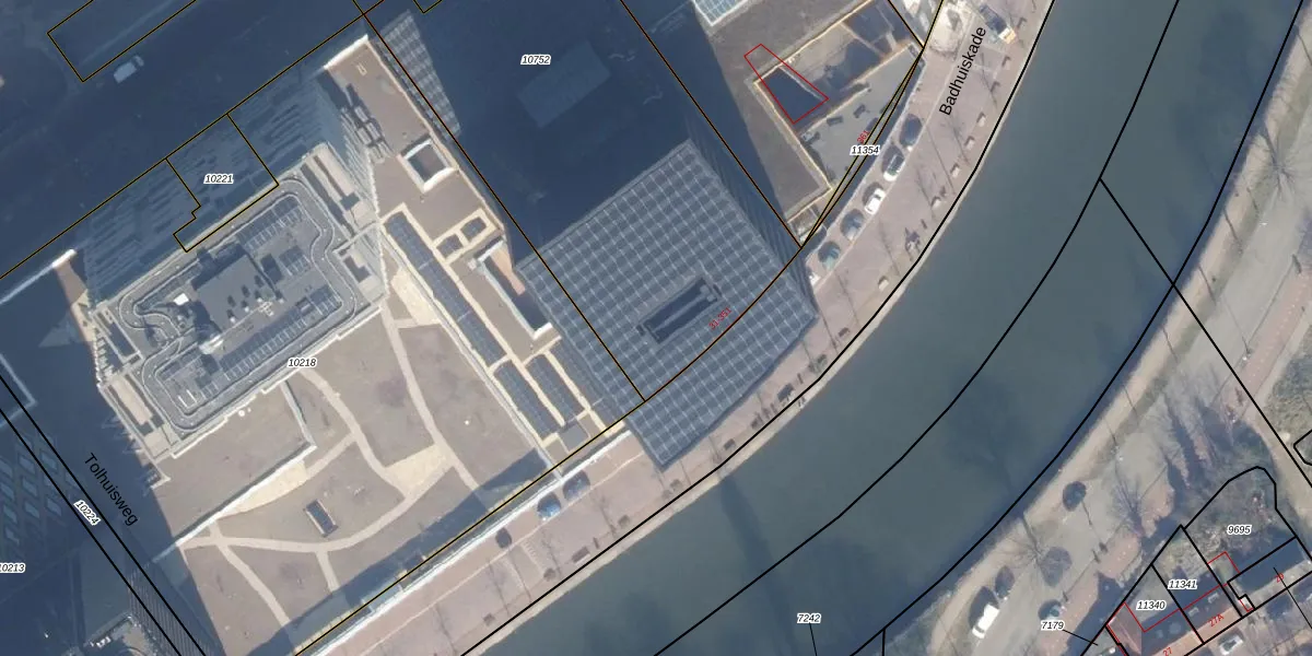Het perceel waarop Badhuiskade 233 staat heeft een oppervlakte van 2329 m². Dit is een zeer groot perceel. De perceeloppervlakte wordt geregistreerd door het Kadaster. Gedetailleerde informatie over de maten van dit perceel kunt u vinden in het rapport Kadastrale kaart met maatvoering van Badhuiskade 233.
