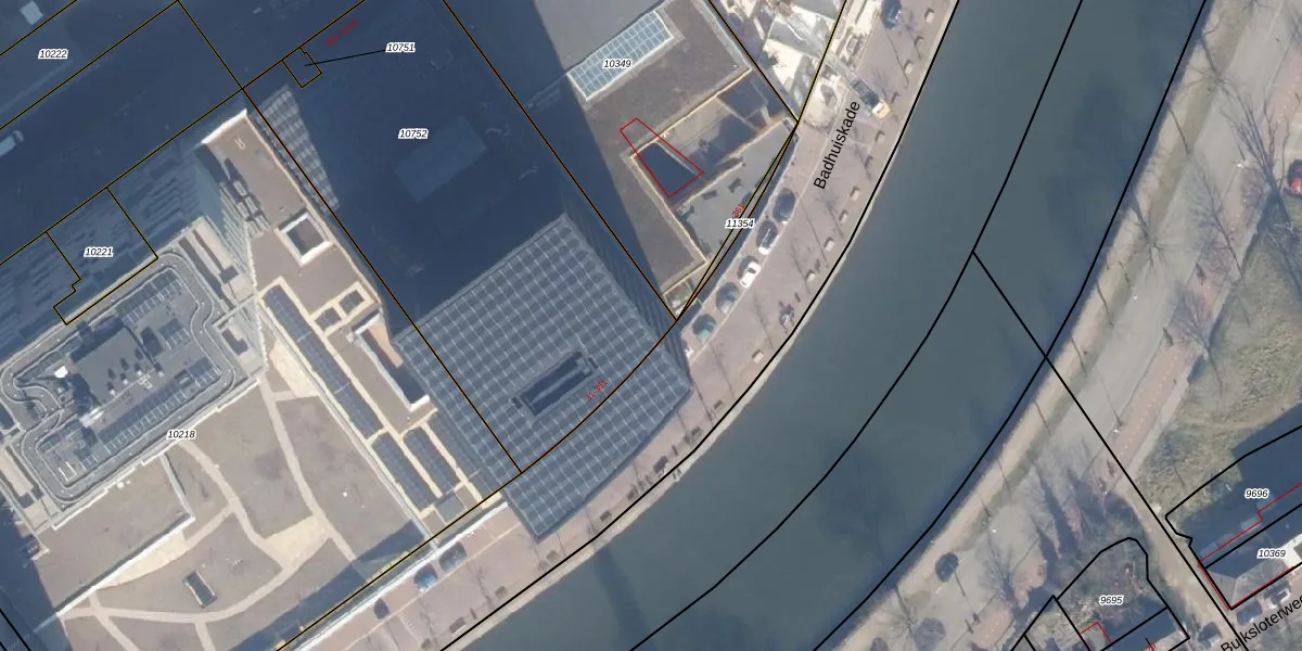 Het perceel waarop Badhuiskade 59 staat heeft een oppervlakte van 2329 m². Dit is een zeer groot perceel. De perceeloppervlakte wordt geregistreerd door het Kadaster. Gedetailleerde informatie over de maten van dit perceel kunt u vinden in het rapport Kadastrale kaart met maatvoering van Badhuiskade 59.