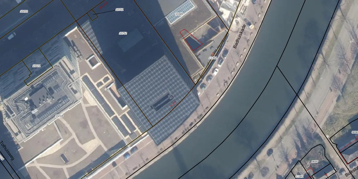 Het perceel waarop Badhuiskade 79 staat heeft een oppervlakte van 2329 m². Dit is een zeer groot perceel. De perceeloppervlakte wordt geregistreerd door het Kadaster. Gedetailleerde informatie over de maten van dit perceel kunt u vinden in het rapport Kadastrale kaart met maatvoering van Badhuiskade 79.