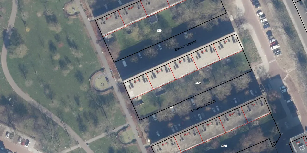 Het perceel waarop Bakkumstraat 35 staat heeft een oppervlakte van 2110 m². Dit is een zeer groot perceel. De perceeloppervlakte wordt geregistreerd door het Kadaster. Gedetailleerde informatie over de maten van dit perceel kunt u vinden in het rapport Kadastrale kaart met maatvoering van Bakkumstraat 35.