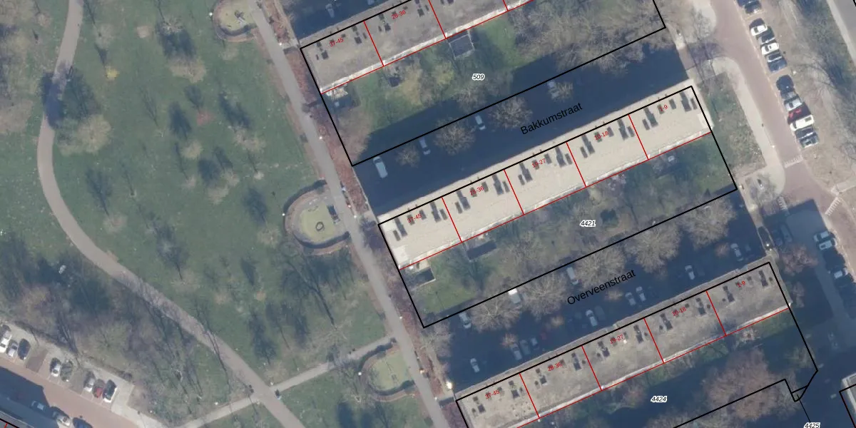 Het perceel waarop Bakkumstraat 39 staat heeft een oppervlakte van 2110 m². Dit is een zeer groot perceel. De perceeloppervlakte wordt geregistreerd door het Kadaster. Gedetailleerde informatie over de maten van dit perceel kunt u vinden in het rapport Kadastrale kaart met maatvoering van Bakkumstraat 39.