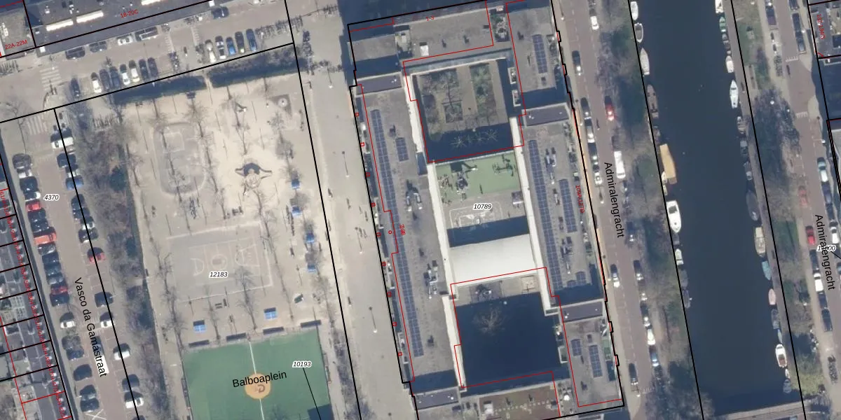 Het perceel waarop Balboaplein 22 staat heeft een oppervlakte van 5114 m². Dit is een zeer groot perceel. De perceeloppervlakte wordt geregistreerd door het Kadaster. Gedetailleerde informatie over de maten van dit perceel kunt u vinden in het rapport Kadastrale kaart met maatvoering van Balboaplein 22.