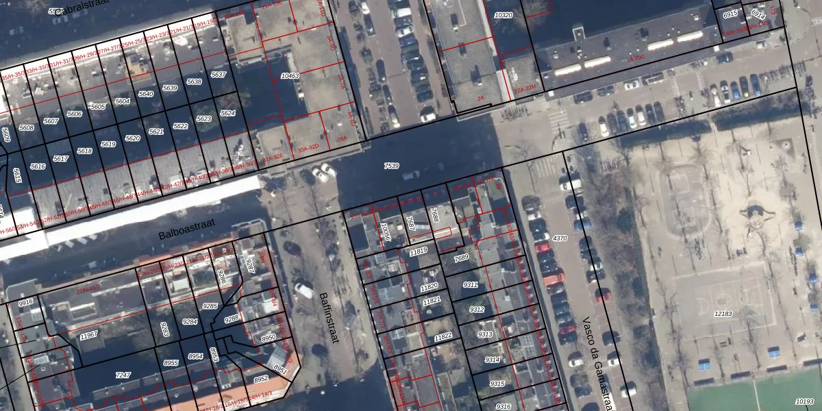 Het perceel waarop Balboastraat 13-H staat heeft een oppervlakte van 76 m². Dit is een klein perceel. De perceeloppervlakte wordt geregistreerd door het Kadaster. Gedetailleerde informatie over de maten van dit perceel kunt u vinden in het rapport Kadastrale kaart met maatvoering van Balboastraat 13-H.