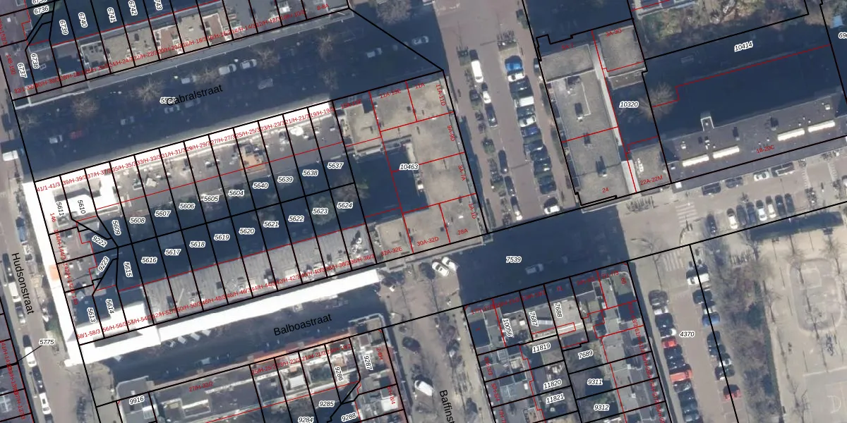 Het perceel waarop Balboastraat 30-E staat heeft een oppervlakte van 1112 m². Dit is een zeer groot perceel. De perceeloppervlakte wordt geregistreerd door het Kadaster. Gedetailleerde informatie over de maten van dit perceel kunt u vinden in het rapport Kadastrale kaart met maatvoering van Balboastraat 30-E.