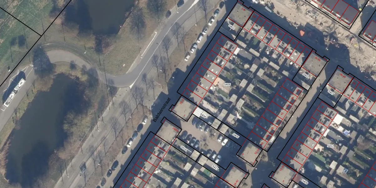 Het perceel waarop Baldwinstraat 24 staat heeft een oppervlakte van 3014 m². Dit is een zeer groot perceel. De perceeloppervlakte wordt geregistreerd door het Kadaster. Gedetailleerde informatie over de maten van dit perceel kunt u vinden in het rapport Kadastrale kaart met maatvoering van Baldwinstraat 24.