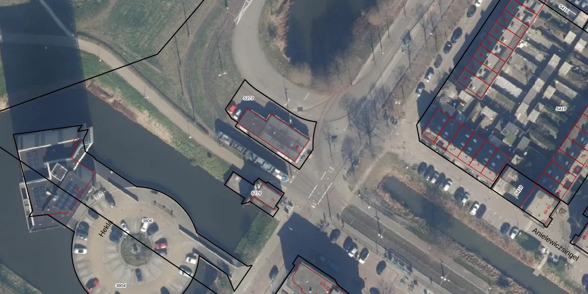 Gebruik de zoekbalk of klik op een perceel voor informatie over de adressen binnen dit perceel.