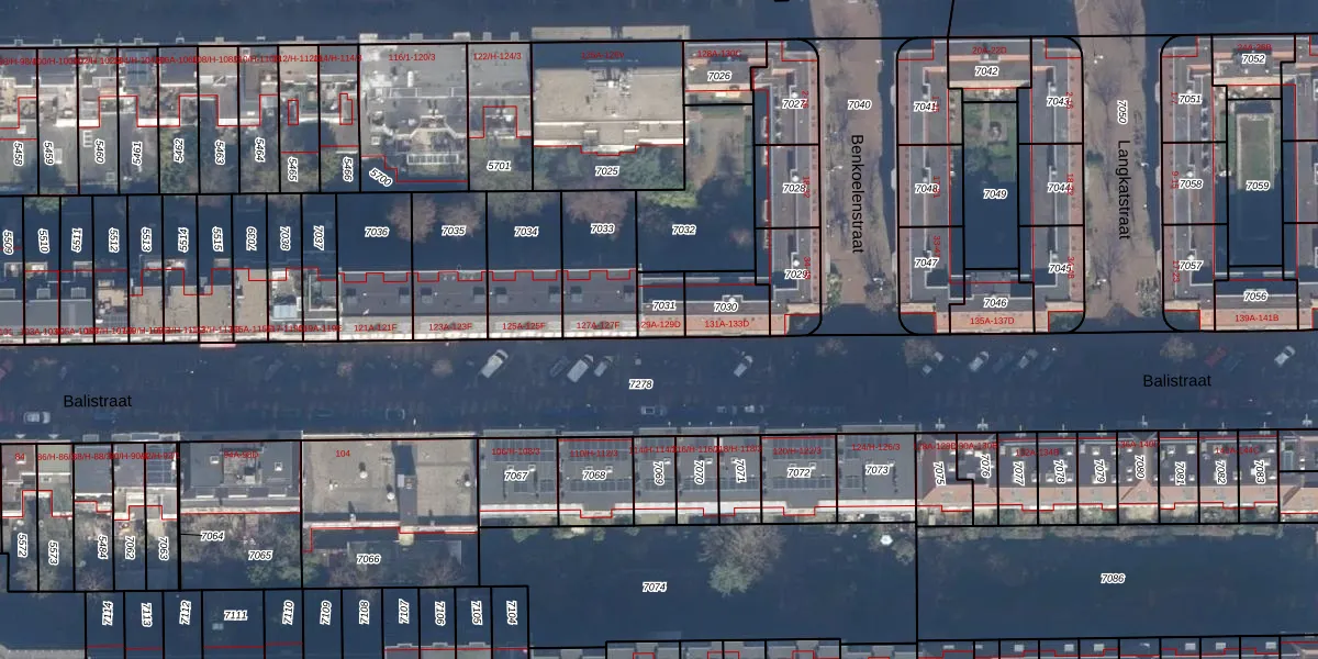 Het perceel waarop Balistraat 129-A staat heeft een oppervlakte van 72 m². Dit is een klein perceel. De perceeloppervlakte wordt geregistreerd door het Kadaster. Gedetailleerde informatie over de maten van dit perceel kunt u vinden in het rapport Kadastrale kaart met maatvoering van Balistraat 129-A.