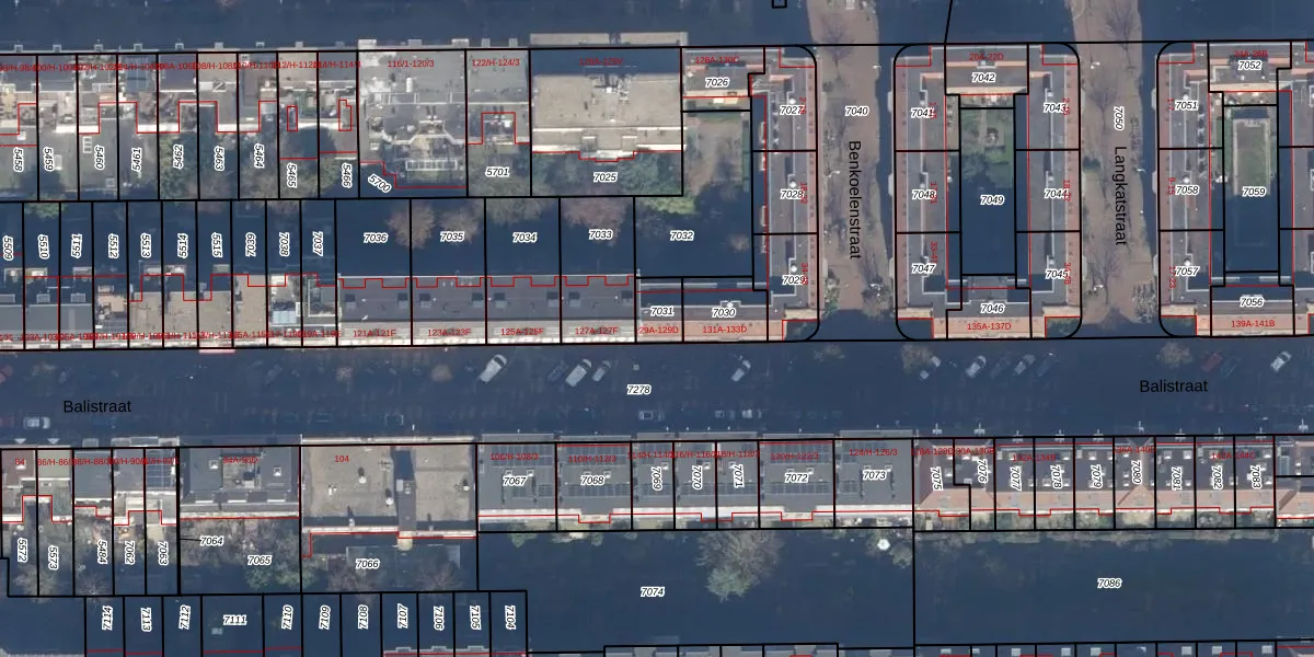 Het perceel waarop Balistraat 129-B staat heeft een oppervlakte van 72 m². Dit is een klein perceel. De perceeloppervlakte wordt geregistreerd door het Kadaster. Gedetailleerde informatie over de maten van dit perceel kunt u vinden in het rapport Kadastrale kaart met maatvoering van Balistraat 129-B.