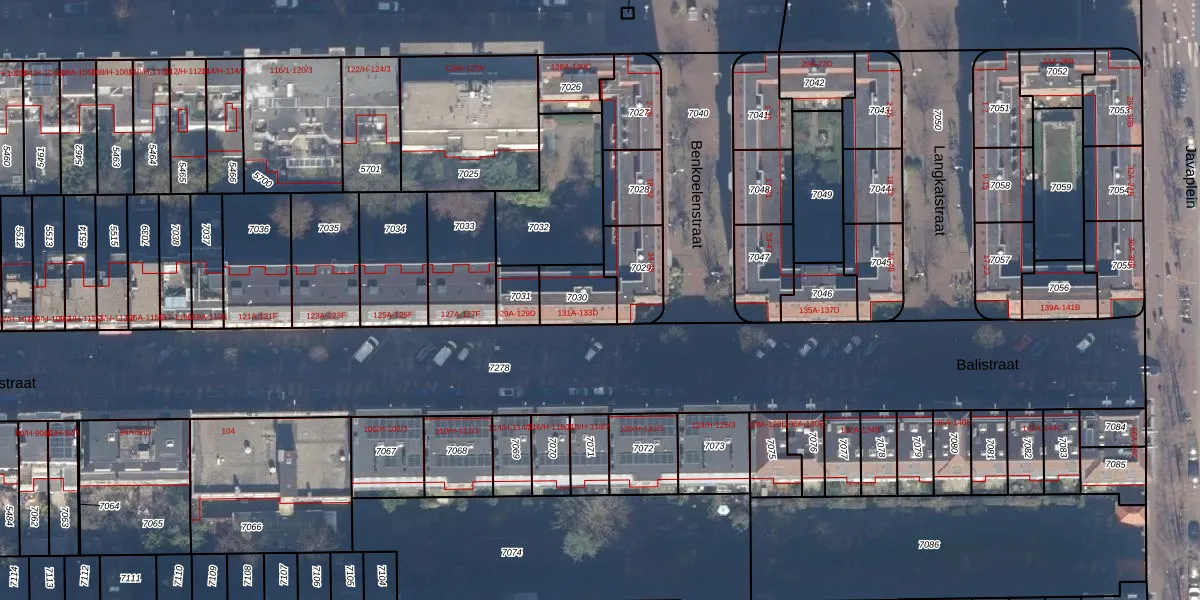 Het perceel waarop Balistraat 133-C staat heeft een oppervlakte van 121 m². Dit is een middelgroot perceel. De perceeloppervlakte wordt geregistreerd door het Kadaster. Gedetailleerde informatie over de maten van dit perceel kunt u vinden in het rapport Kadastrale kaart met maatvoering van Balistraat 133-C.