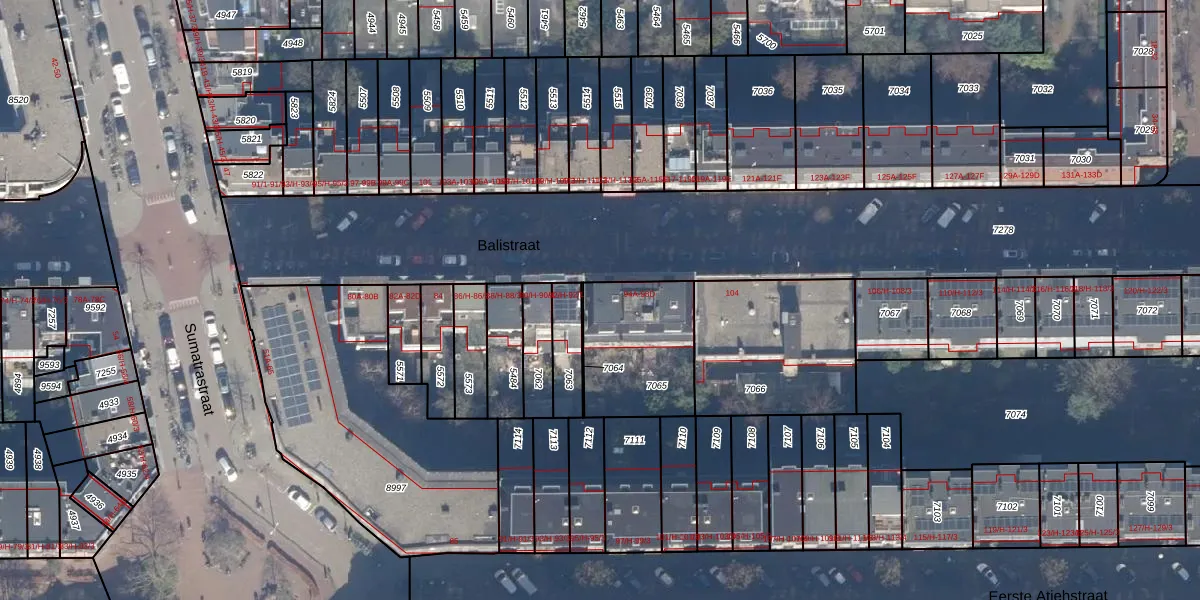 Het perceel waarop Balistraat 94-C staat heeft een oppervlakte van 419 m². Dit is een groot perceel. De perceeloppervlakte wordt geregistreerd door het Kadaster. Gedetailleerde informatie over de maten van dit perceel kunt u vinden in het rapport Kadastrale kaart met maatvoering van Balistraat 94-C.