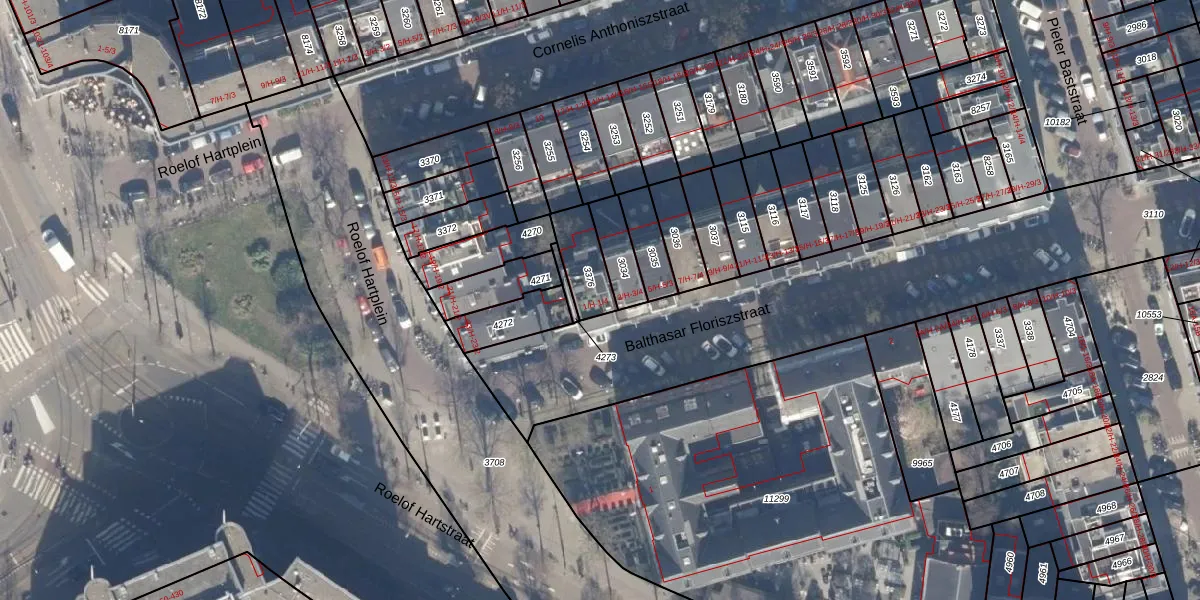 Het perceel waarop Balthasar Floriszstraat 1-4 staat heeft een oppervlakte van 119 m². Dit is een middelgroot perceel. De perceeloppervlakte wordt geregistreerd door het Kadaster. Gedetailleerde informatie over de maten van dit perceel kunt u vinden in het rapport Kadastrale kaart met maatvoering van Balthasar Floriszstraat 1-4.