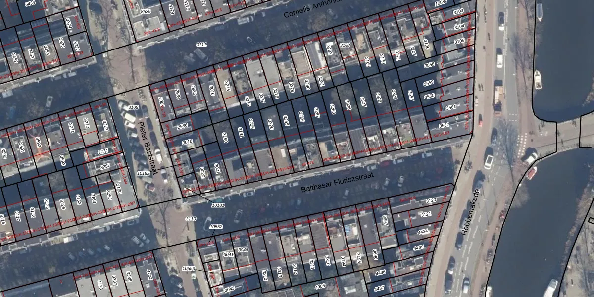 Het adres is gelegen op perceel 3265 in de sectie U en de kadastrale gemeente Amsterdam. De kadastrale aanduiding is aldus ASD17-U-3265. Het perceel is 122 m² groot. Dat is kleiner dan de gemiddelde perceeloppervlakte in Amsterdam, dat op 394,52 m² ligt. Het grootste perceel in de kadastrale gemeente is 22,9 ha. Het kleinste perceel heeft een oppervlakte van 0 m². Er zijn 5 adressen aanwezig op het perceel. De laatste wijziging in het de Basisregistratie Kadaster (BRK) was op 25-01-2007.
