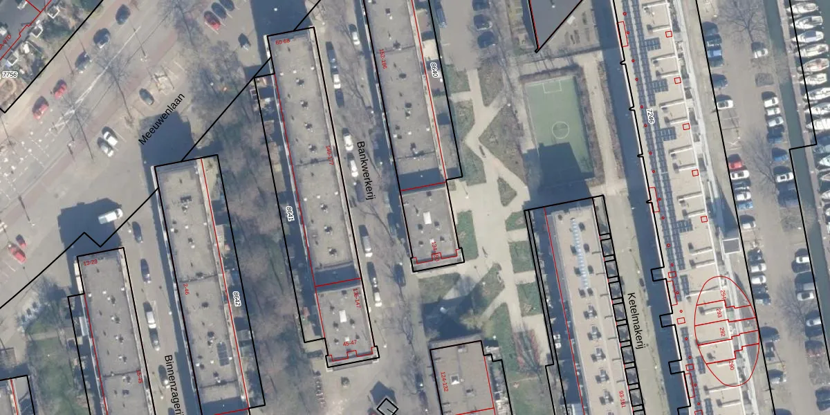 Het perceel waarop Bankwerkerij 148 staat heeft een oppervlakte van 1182 m². Dit is een zeer groot perceel. De perceeloppervlakte wordt geregistreerd door het Kadaster. Gedetailleerde informatie over de maten van dit perceel kunt u vinden in het rapport Kadastrale kaart met maatvoering van Bankwerkerij 148.