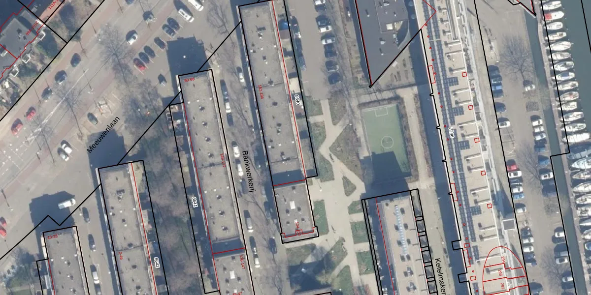 Het perceel waarop Bankwerkerij 162 staat heeft een oppervlakte van 1182 m². Dit is een zeer groot perceel. De perceeloppervlakte wordt geregistreerd door het Kadaster. Gedetailleerde informatie over de maten van dit perceel kunt u vinden in het rapport Kadastrale kaart met maatvoering van Bankwerkerij 162.