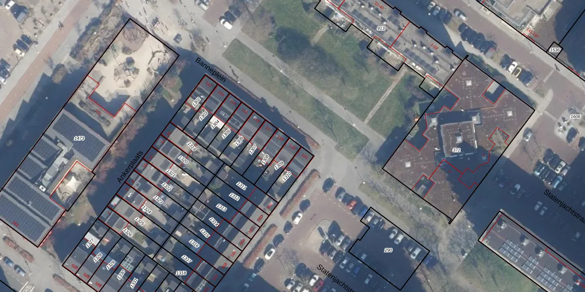 Gebruik de zoekbalk of klik op een perceel voor informatie over de adressen binnen dit perceel.