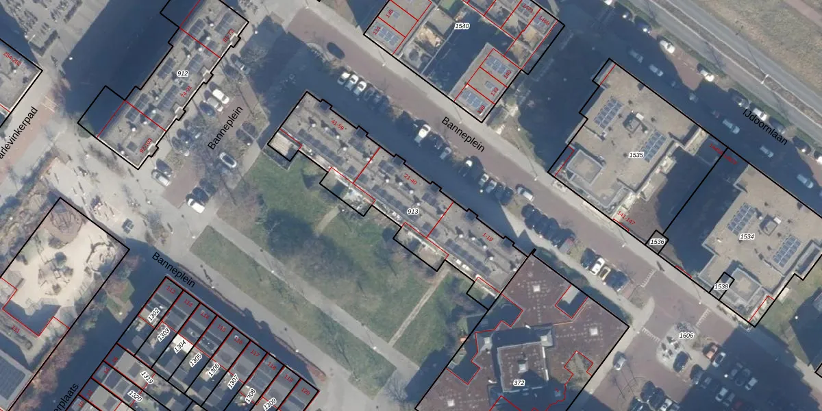 Het perceel waarop Banneplein 23 staat heeft een oppervlakte van 1002 m². Dit is een zeer groot perceel. De perceeloppervlakte wordt geregistreerd door het Kadaster. Gedetailleerde informatie over de maten van dit perceel kunt u vinden in het rapport Kadastrale kaart met maatvoering van Banneplein 23.