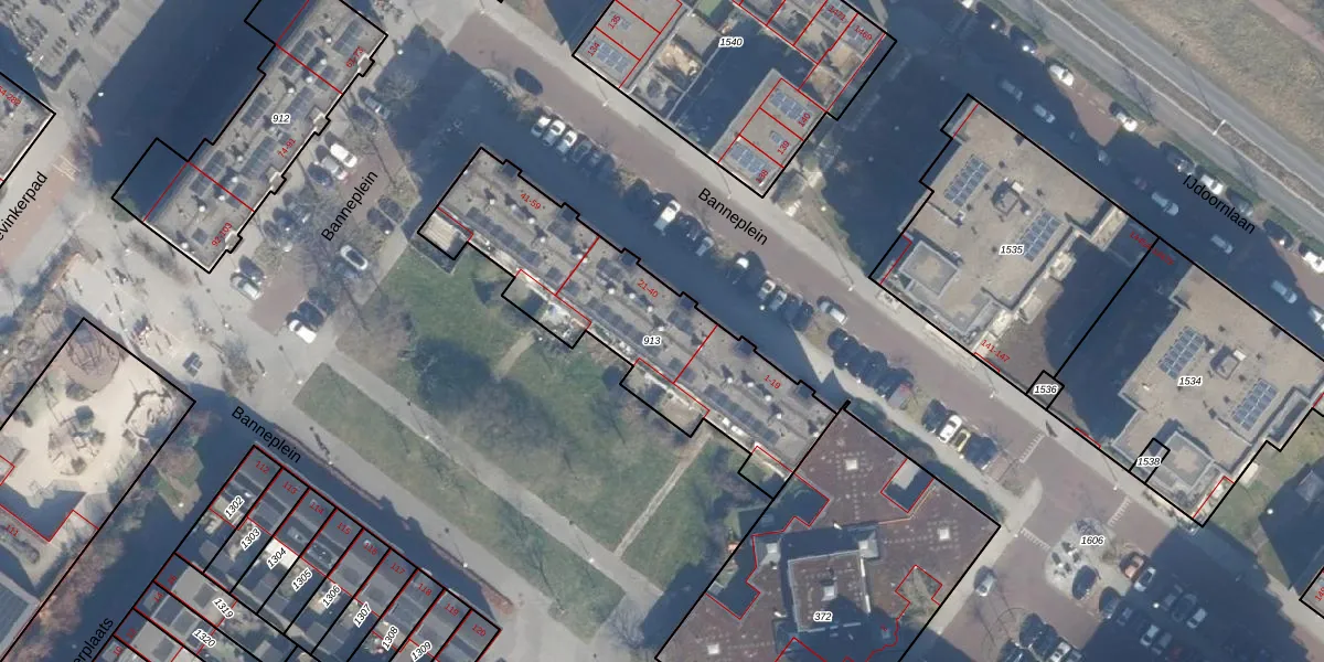 Het perceel waarop Banneplein 25 staat heeft een oppervlakte van 1002 m². Dit is een zeer groot perceel. De perceeloppervlakte wordt geregistreerd door het Kadaster. Gedetailleerde informatie over de maten van dit perceel kunt u vinden in het rapport Kadastrale kaart met maatvoering van Banneplein 25.