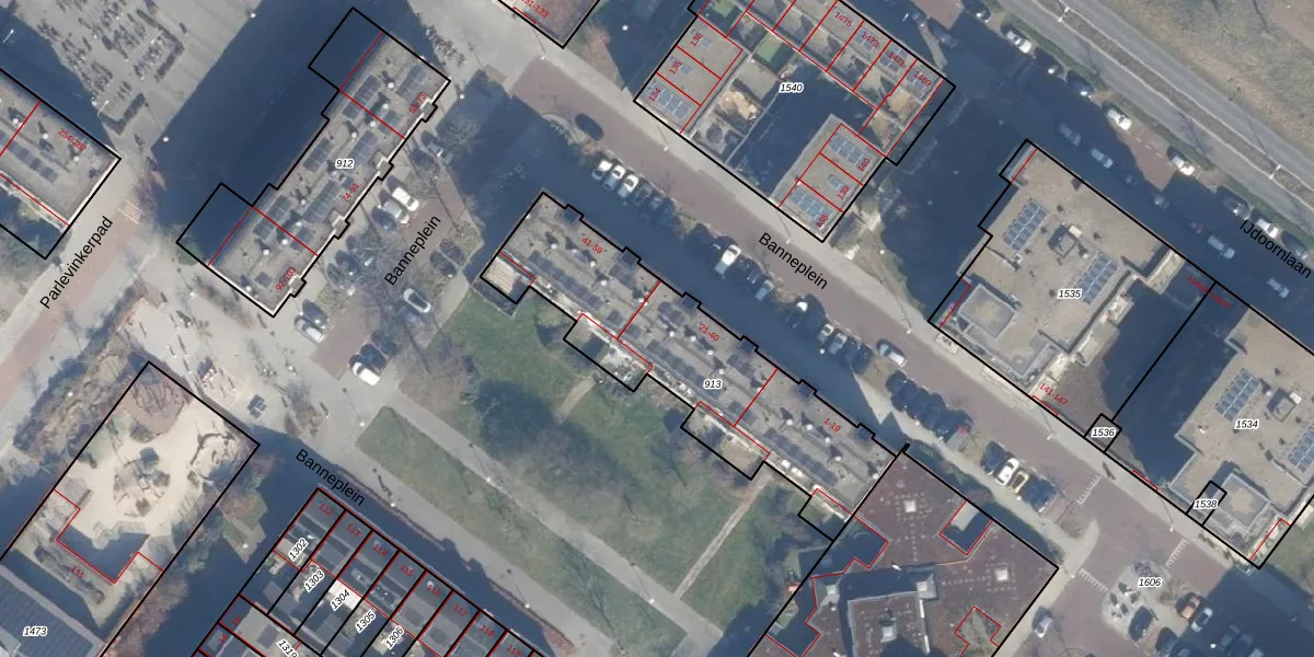 Het perceel waarop Banneplein 36 staat heeft een oppervlakte van 1002 m². Dit is een zeer groot perceel. De perceeloppervlakte wordt geregistreerd door het Kadaster. Gedetailleerde informatie over de maten van dit perceel kunt u vinden in het rapport Kadastrale kaart met maatvoering van Banneplein 36.
