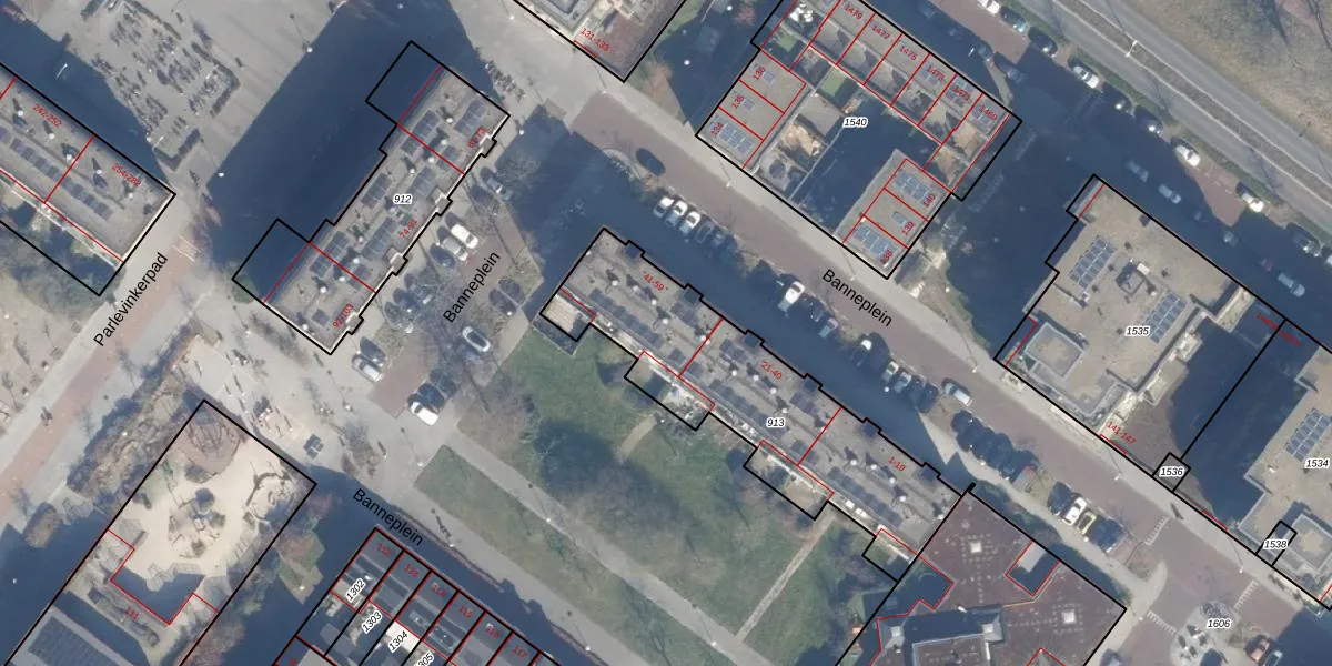 Het perceel waarop Banneplein 47 staat heeft een oppervlakte van 1002 m². Dit is een zeer groot perceel. De perceeloppervlakte wordt geregistreerd door het Kadaster. Gedetailleerde informatie over de maten van dit perceel kunt u vinden in het rapport Kadastrale kaart met maatvoering van Banneplein 47.