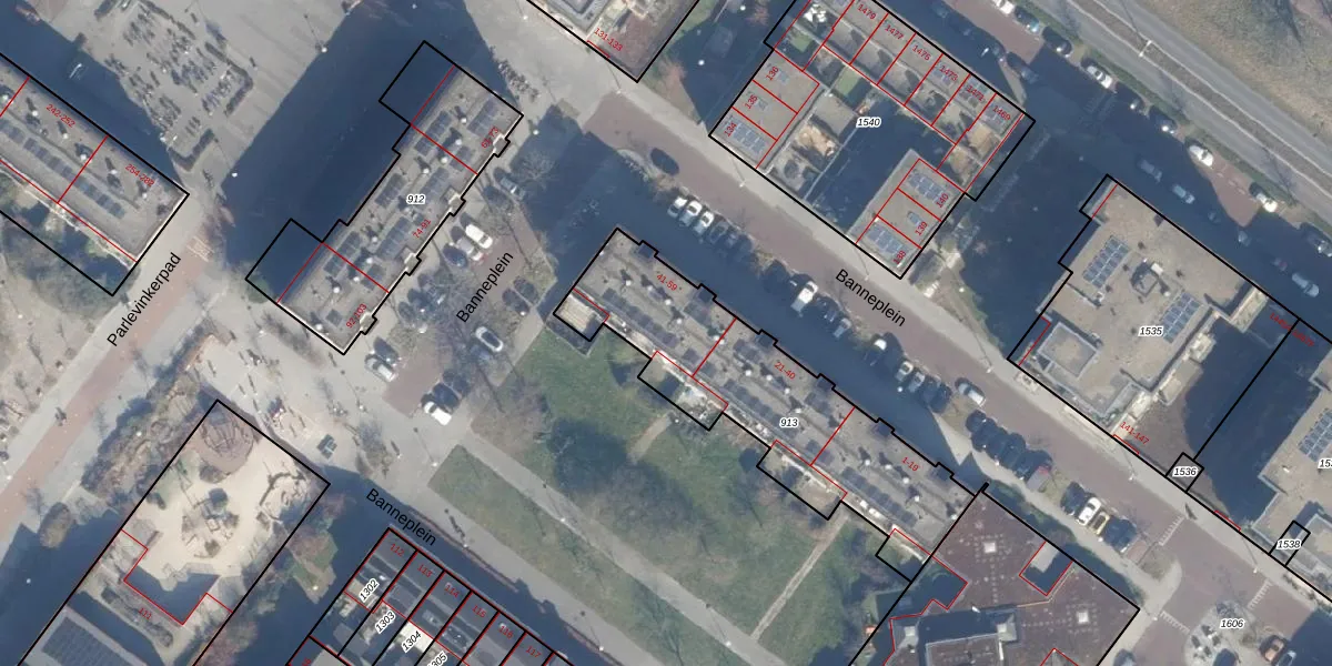 Het perceel waarop Banneplein 50 staat heeft een oppervlakte van 1002 m². Dit is een zeer groot perceel. De perceeloppervlakte wordt geregistreerd door het Kadaster. Gedetailleerde informatie over de maten van dit perceel kunt u vinden in het rapport Kadastrale kaart met maatvoering van Banneplein 50.
