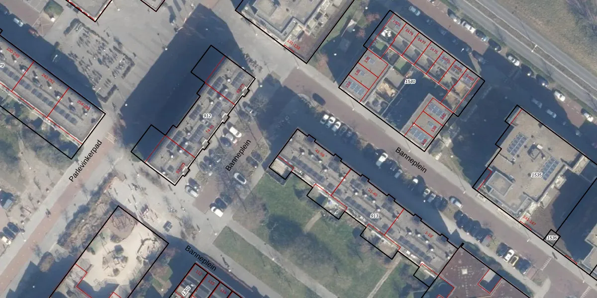 Het perceel waarop Banneplein 51 staat heeft een oppervlakte van 1002 m². Dit is een zeer groot perceel. De perceeloppervlakte wordt geregistreerd door het Kadaster. Gedetailleerde informatie over de maten van dit perceel kunt u vinden in het rapport Kadastrale kaart met maatvoering van Banneplein 51.