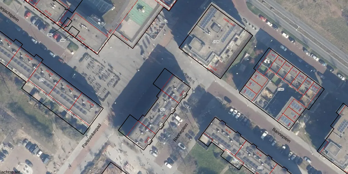 Het perceel waarop Banneplein 61 staat heeft een oppervlakte van 694 m². Dit is een groot perceel. De perceeloppervlakte wordt geregistreerd door het Kadaster. Gedetailleerde informatie over de maten van dit perceel kunt u vinden in het rapport Kadastrale kaart met maatvoering van Banneplein 61.