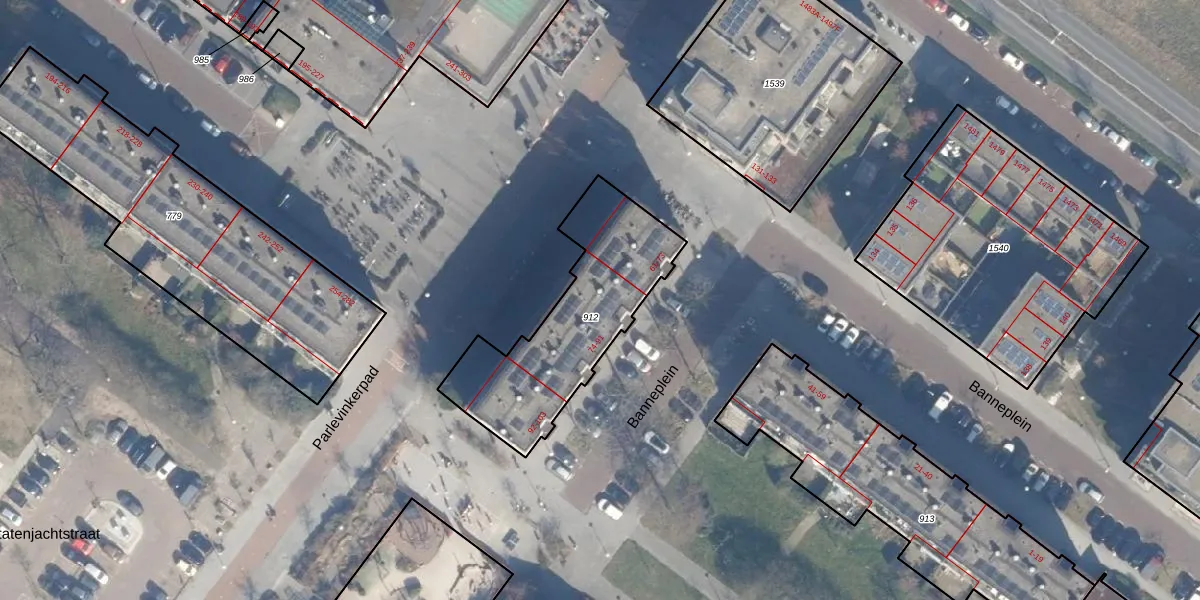 Het perceel waarop Banneplein 79 staat heeft een oppervlakte van 694 m². Dit is een groot perceel. De perceeloppervlakte wordt geregistreerd door het Kadaster. Gedetailleerde informatie over de maten van dit perceel kunt u vinden in het rapport Kadastrale kaart met maatvoering van Banneplein 79.