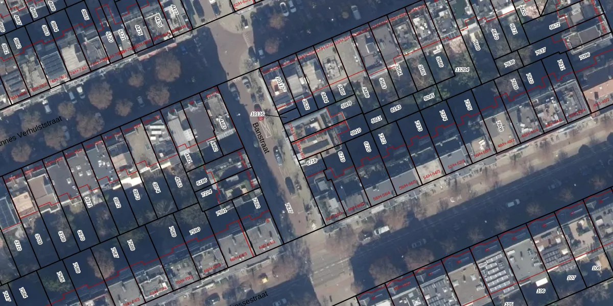 Het perceel waarop Banstraat 19-H staat heeft een oppervlakte van 172 m². Dit is een middelgroot perceel. De perceeloppervlakte wordt geregistreerd door het Kadaster. Gedetailleerde informatie over de maten van dit perceel kunt u vinden in het rapport Kadastrale kaart met maatvoering van Banstraat 19-H.