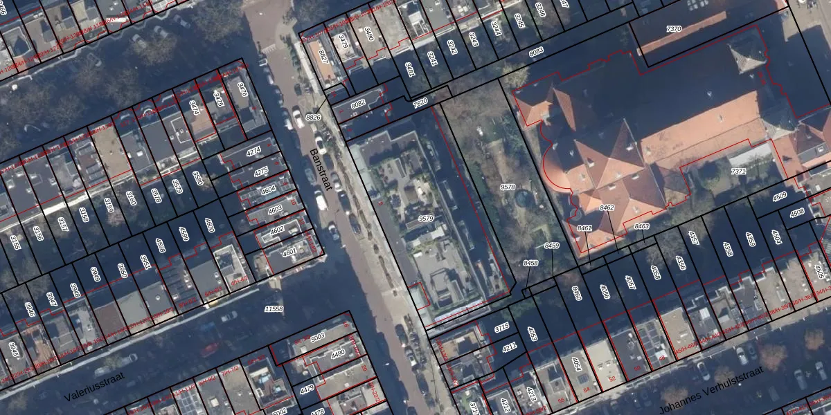 Het perceel waarop het adres ligt is ASD17-U-9579. De afkorting 'ASD17' staat voor kadastrale gemeente Amsterdam. Het perceel is met 1205 m² relatief groot. Het gemiddelde ligt in de kadastrale gemeente Amsterdam op 394,52 m². Het kleinste perceel in de kadastrale gemeente is 0 m² groot. De grootste perceeloppervlakte is 22,9 ha. Op het perceel liggen in totaal 12 adressen. De huidige grenzen van het perceel zijn digitaal in de Basisregistratie Kadaster (BRK) geregistreerd op 08-12-2006.