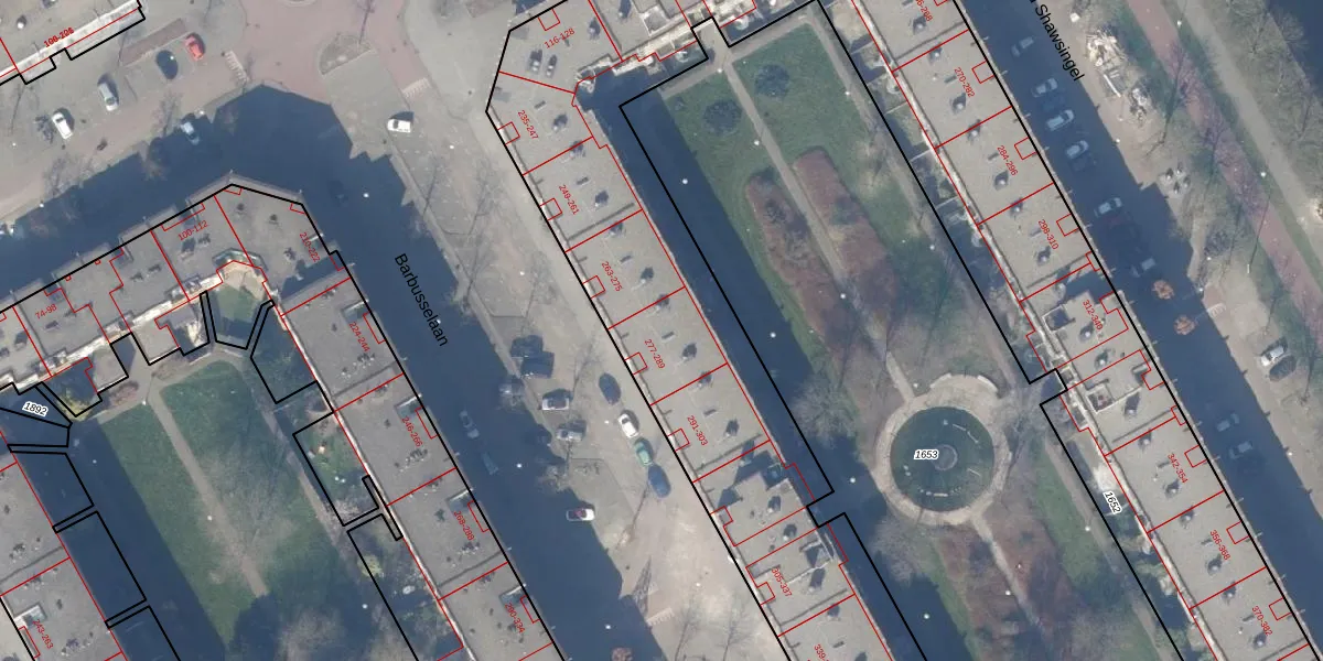 Het perceel waarop Barbusselaan 281 staat heeft een oppervlakte van 7357 m². Dit is een zeer groot perceel. De perceeloppervlakte wordt geregistreerd door het Kadaster. Gedetailleerde informatie over de maten van dit perceel kunt u vinden in het rapport Kadastrale kaart met maatvoering van Barbusselaan 281.