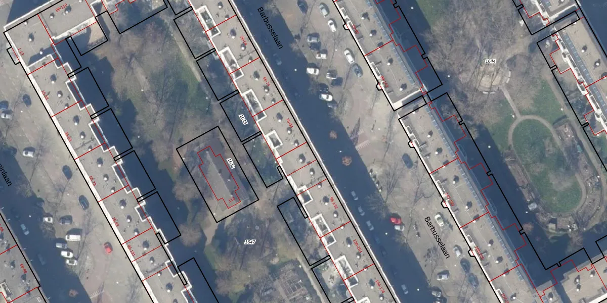Barbusselaan 96 is gelegen op kadastraal perceel WPK02A1645. Deze kadastrale aanduiding is uniek en wordt gebruikt door het Kadaster om eigendomsrechten en andere zakelijke rechten vast te leggen. Het perceel maakt onderdeel uit van de kadastrale gemeente Weesperkarspel.